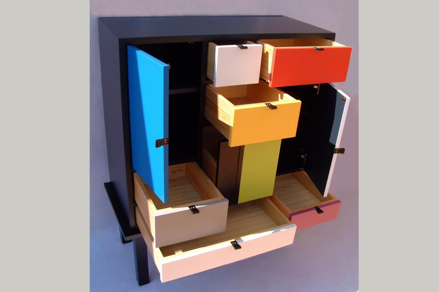 La cajonera MON es una obra de arte en tu salón, un juego de tamaños, formas y colores que rápidamente nos trae a la memoria elementos plásticos conocidos. Y que da como resultado un mueble auxiliar absolutamente atemporal y estético que combina perfectamente la funcionalidad con la estética, apto para cualquier espacio de la casa: recibidor, salón, dormitorio, baño o cocina.