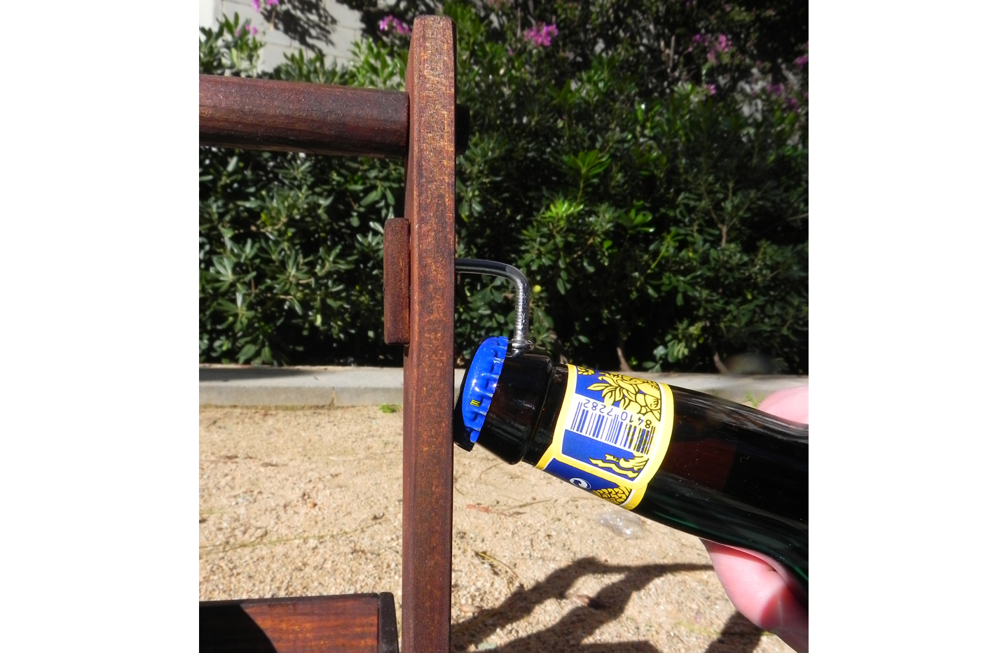 Siempre pensamos que también es divertido hacer cosas para el ocio, esos objetos que resulten originales para cualquier compromiso, pues bien, os presentamos un curioso y original botellero hecho en madera reciclada de palé, ideal para un regalo, una salida al campo, o esa fiesta a la que siempre nos invitan, y como veréis podéis olvidaros del dichoso abridor, puesto que lo lleva incorporado !!.