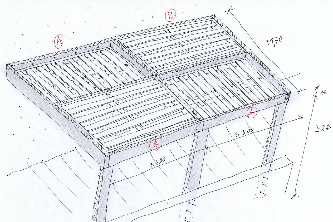 Encargo de una pérgola para terraza. Obra realizada en madera de pino y abeto laminada, tratada, y acabada con lasure en color Teka. Su singular diseño, que juega con las alturas y la orientación de las lamas, da como resultado un interesante juego de sombras que crea en esta terraza un espacio sombreado muy acogedor, ideal para disfrutar de unas bellas puestas de sol.